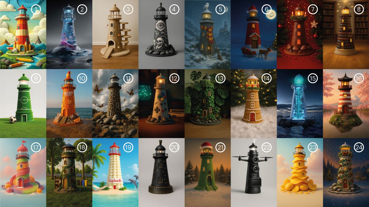 Dieses Jahr brennen gleich 24 Leuchttürme: Unsere Agentur Graswald.Heiligtag wird 24 und steuert aufs 25-jährige Jubiläum 2026 zu. Deshalb gibt’s ab 1. Dezember 2025 unseren Leuchtturm-Adventskalender – jeden Tag ein neuer, individuell gestalteter Turm aus unserem Team.