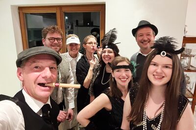 Genau in diese Welt ist unser Team vorgestern beim Krimi-Dinner eingetaucht. Wir haben gerätselt, diskutiert, gelacht – und den Mörder Kathi, alias die glanzvolle Stummfilmdarstellerin Mimi Crye (fast) entlarvt.